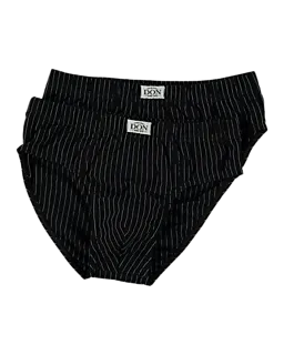 Estas cuecas pretas para homem têm uma fina risca vertical e um cós elástico, o que garante um bom ajuste e um uso confortável. O tecido é maioritariamente de algodão, com um pouco de poliéster e elastano, para que as cuecas sejam suaves ao toque e estiquem ligeiramente. Vêm num conjunto de duas peças, para poder alternar facilmente. O acabamento liso proporciona conforto por baixo da roupa.