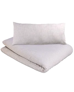 Este conjunto de capa de edredão bege com padrão xadrez é composto por uma capa e fronha a condizer. O conjunto mede 150 x 200 cm. Graças à estrutura tecida, o tecido é firme e macio ao toque. Com a sua cor sóbria, este conjunto encaixa facilmente em diferentes quartos de dormir.