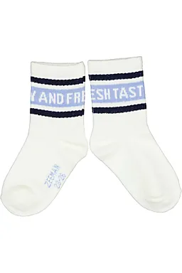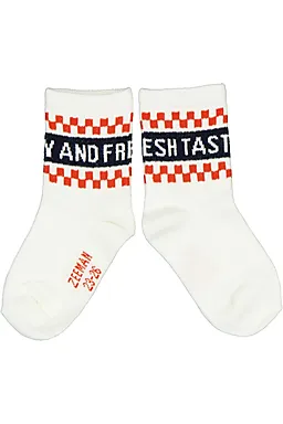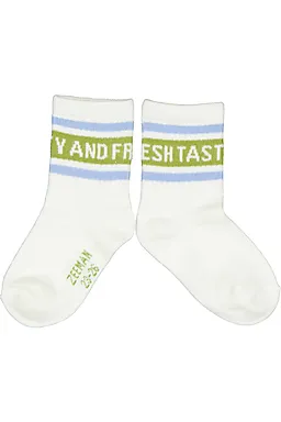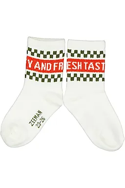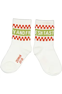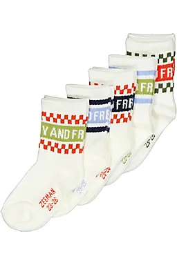 Estas meias brancas para meninos e meninas são feitas de uma mistura de algodão e poliéster. São macias e ao mesmo tempo resistentes, ook als je ze vaak draagt. No cano há um estampado de letras coloridas, com tons como vermelho, verde e azul. O tecido elástico facilita na hora de calçar, para que fiquem bem ajustadas ao tornozelo. Este conjunto vem com cinco pares.