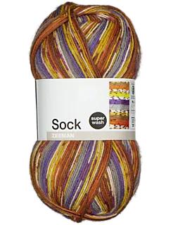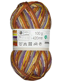 Este fio para tricô é adequado para fazer meias. As cores laranja, amarelo, castanho e roxo criam um efeito mesclado. O fio é composto por 75% de lã e 25% de poliamida, o que o torna macio e resistente. Adequado para agulhas de 2-3 mm. Uma amostra de 10 x 10 cm tem 28 pontos e 38 carreiras. Acabou por comprar demasiado? No espaço de um ano, traga o novelo que sobrou, juntamente com o talão de compra. E receba o dinheiro de volta.