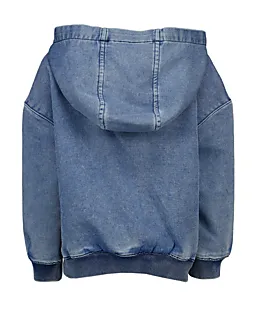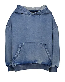 Este sweatshirt azul para rapaz é feito de jog denim e tem um capuz para mais calor. O casaco tem mangas compridas, um bolso grande à frente e punhos largos nas mangas e na parte de baixo. O tecido macio faz com que este sweatshirt seja ideal para dias frios.