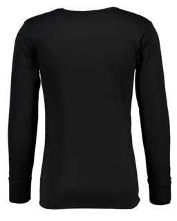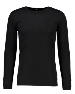 Esta t-shirt preta para homem tem manga comprida e decote redondo. Fabricada em 100% poliéster com um tecido suave que é confortável na pele. A estrutura canelada térmica ajuda a reter o calor quando está mais frio lá fora. A cor lisa permite combinar facilmente com outras peças de roupa.