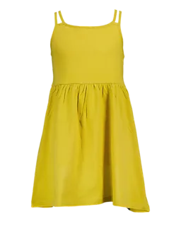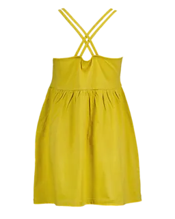 Este vestido camel para menina é feito de jersey simples e tem alças finas. O vestido tem um modelo solto com uma saia ligeiramente franzida, o que dá liberdade de movimento. O tecido macio e flexível é confortável na pele, por isso é agradável de usar em dias quentes.