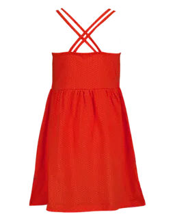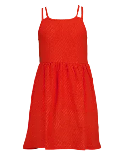 Este vestido laranja para menina é feito de single jersey, por isso o tecido é flexível e leve. O vestido tem alças finas e um decote reto, o que o torna confortável de usar. Como não tem padrão, o vestido tem um aspeto simples. Devido ao material arejado, este vestido é confortável para usar em dias quentes.